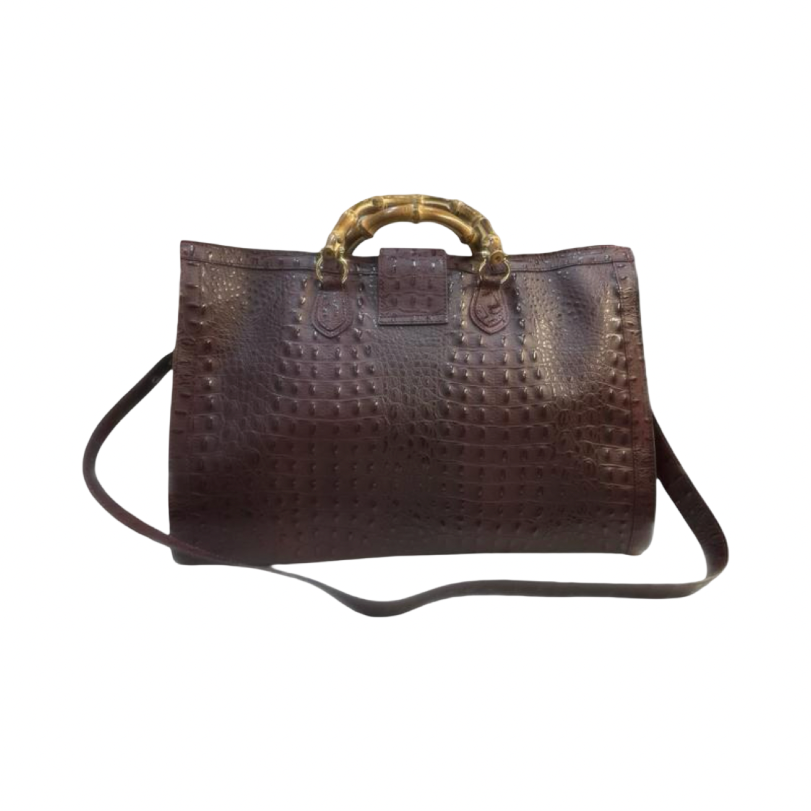 Glamorous spacious roomy lightweight in crocodile print leather. This bag offers maximum versatility with central zip to open thanks to its two bamboo handles for carrying by hand and the cross shoulder strap that allows it to be worn comfortably in different ways. The quality and style blend perfectly into a single creation.